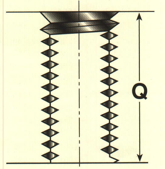 For Plug Taps M8 and smaller: F = Insert Nominal Length (Q) + .5 (Bolt Nominal Diameter) + 4P (Tap Chamfer) + 1P (allowance for countersink and maximum insert set-down).